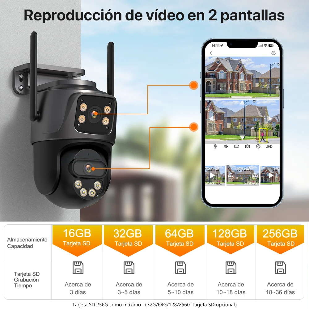 ♡Vista rápidaCámara PTZ 4K 8MP HD Wifi para exteriores 4MP lente Dual pantalla AI seguimiento automático cámara IP CCTV Audio Video vigilancia P2P iCSee23.19 EUREUR 378.08Destacado★★★★★★4.9
