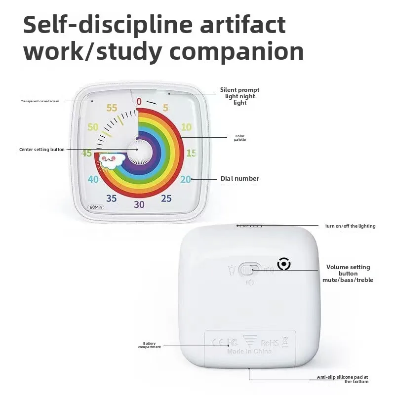Temporizador Visual con Luz Nocturna, Minutero Escolar, Temporizador de Cuenta Regresiva de 60 Minutos para Niños y Adultos, Cronómetro Pomodoro - TopDealBox