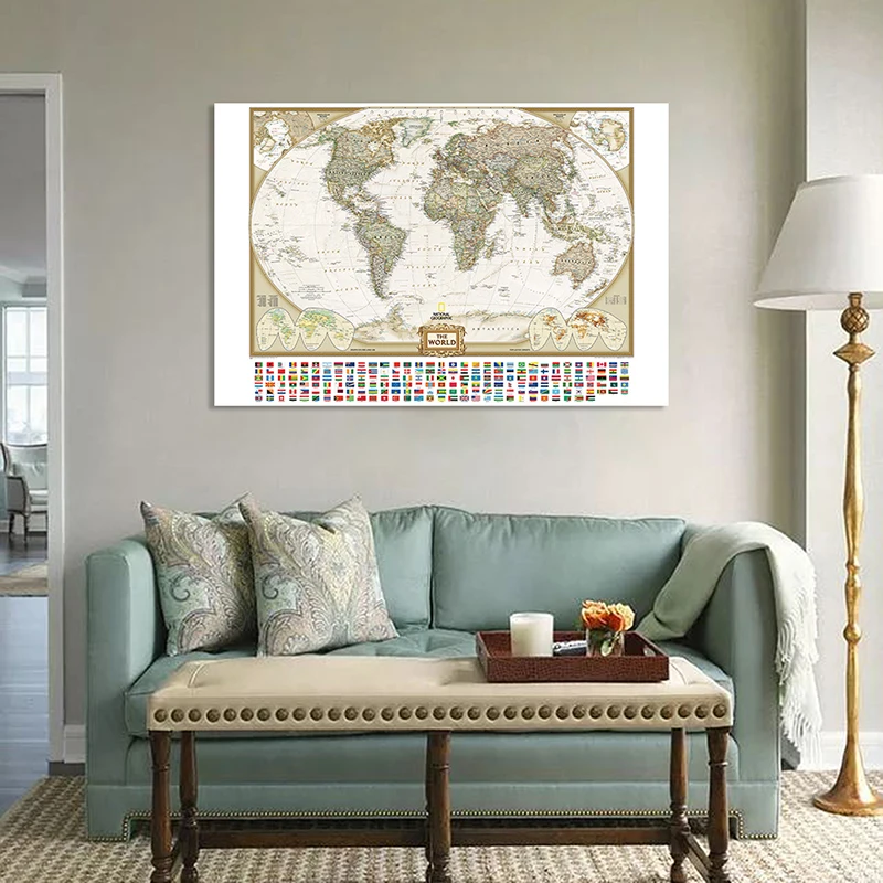 Inicio > Material escolar y de oficina > Mapas y atlas Mapa físico del mundo, 150x100cm, para educación y cultura, pintura de mapa del mundo en aerosol no tejido, decoración del hogar, suministros escolares Información de envío