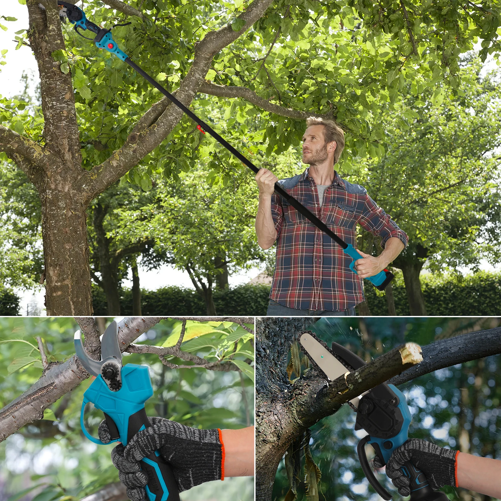 Tijeras de Podar Eléctricas 3 en 1 con Barra Telescópica y Sierra de Cadena sin Escobillas, Herramienta Eléctrica para Podar Árboles de Jardín, Compatible con Batería Makita de 18V - TopDealBox