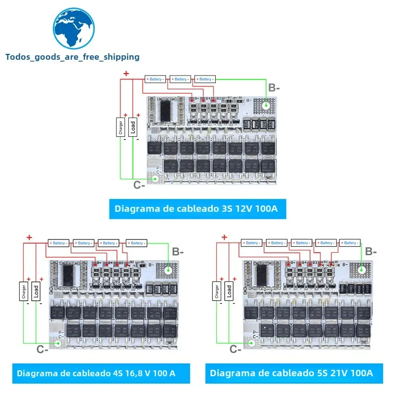 TZT 5S 4S 3S BMS 100A 21V 18V 16,8 V 12V 18650 Li-ion LMO placa de circuito de protección de batería de litio ternaria carga de equilibrio - TopDealBox