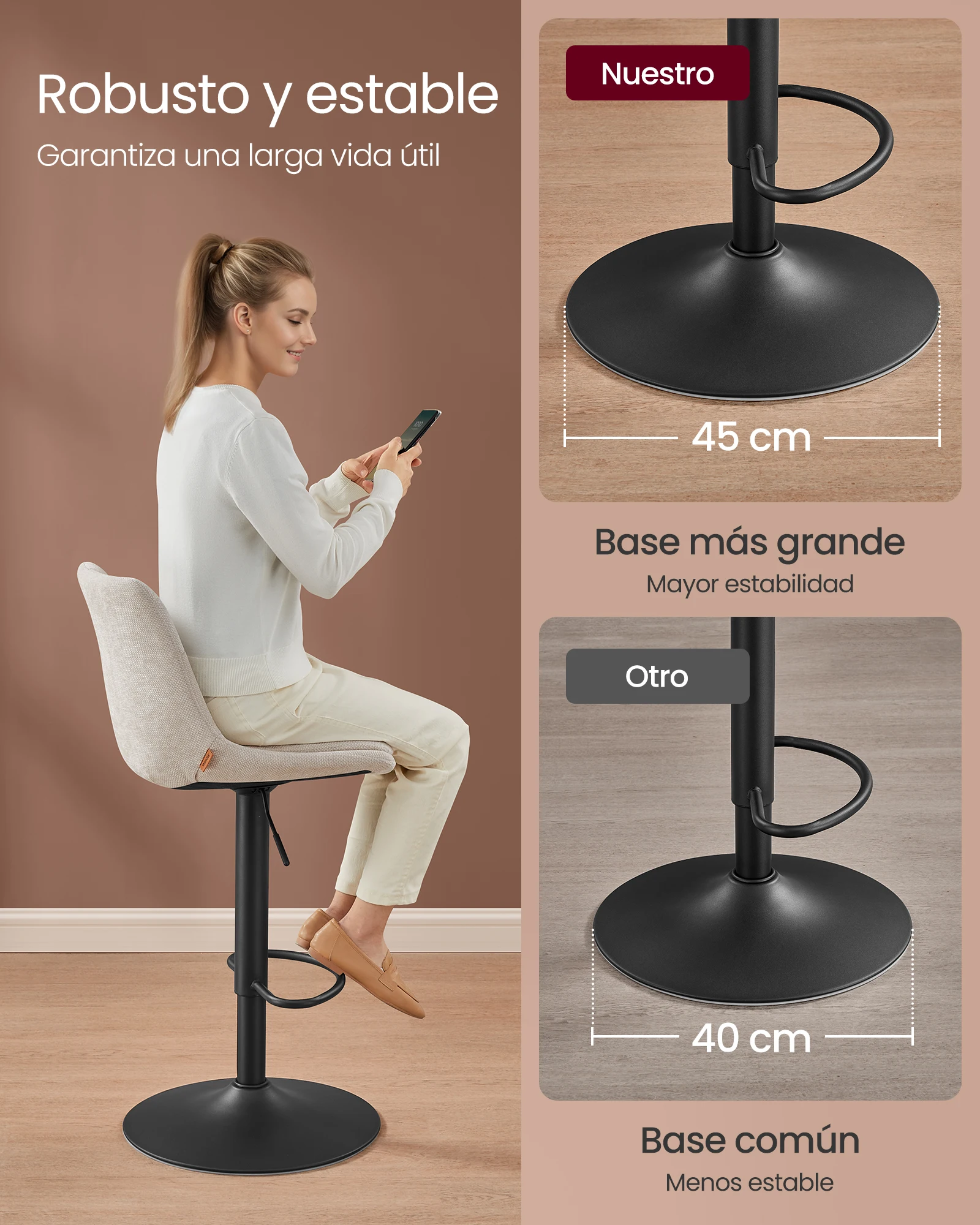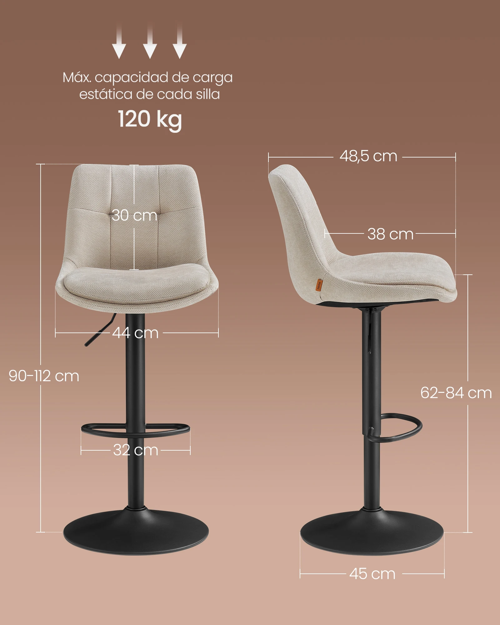 ♡Vista rápidaVASAGLE EKHO Colección - Juego de 2 Taburetes de Bar, Sillas Giratorias de Barra con Respaldo, Cuero Sintético con Costuras, Moderno Siglo Medio, Altura 76 cm, Barra Cocina, Negro Tinta/Marrón Caramelo120.87 EUREUR 209.90Destacado★★★★★★3.7