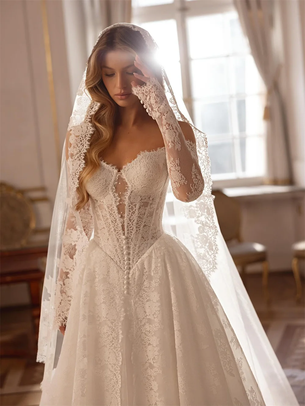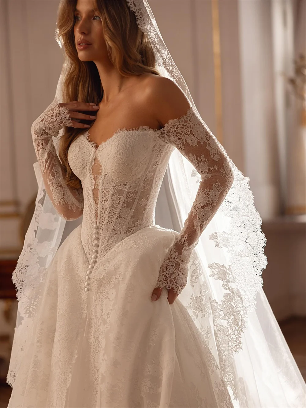 ♡Vista rápidaLORIE-vestidos de novia de encaje de manga larga, vestidos de novia de corte en A con hombros descubiertos, vestido de novia con apliques de princesa sin espalda personalizado85.39 EUREUR 188.91Destacado★★★★★★4.9