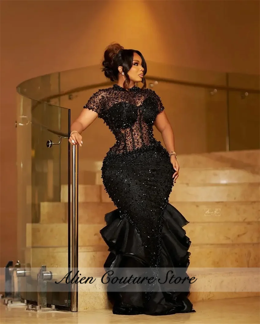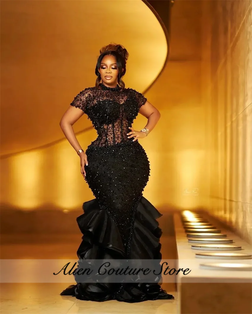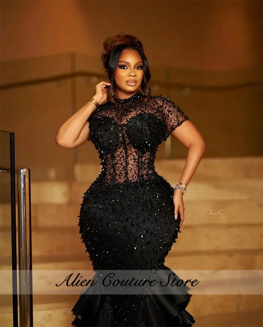Vestidos De Noche elegantes De sirena negros con cuentas De diamantes y perlas vestido De recepción De boda vestido De cumpleaños Vestidos De Noche personalizados - TopDealBox
