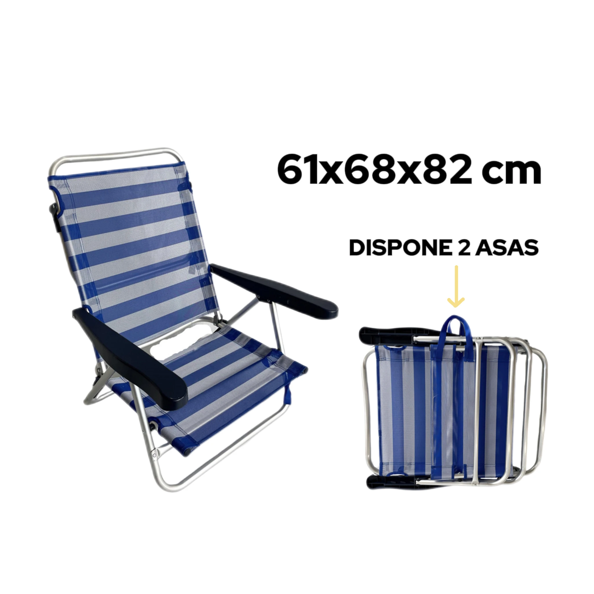 VICTORIA&ANDREA® Silla de playa plegable, Silla de playa reclinable 5 posiciones, 61x68x82 cm, Asas de transporte, Convertibles en Cama, Multiposición, Respaldo reclinable, Ideal para playa y camping - TopDealBox
