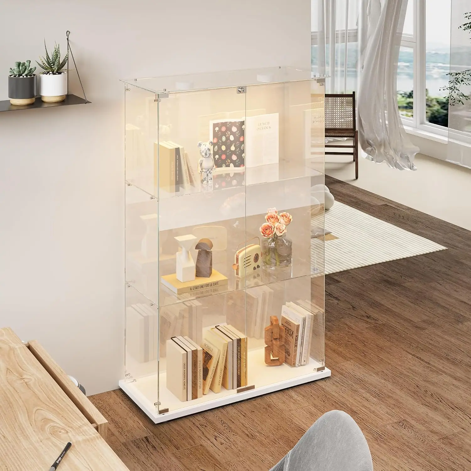 Vitrina de Vidrio de Una Puerta Rosahqnda con 5 Estantes, Gabinetes Negros para Sala de Estar, Dormitorio, Oficina, Exhibición de Colecciones - TopDealBox