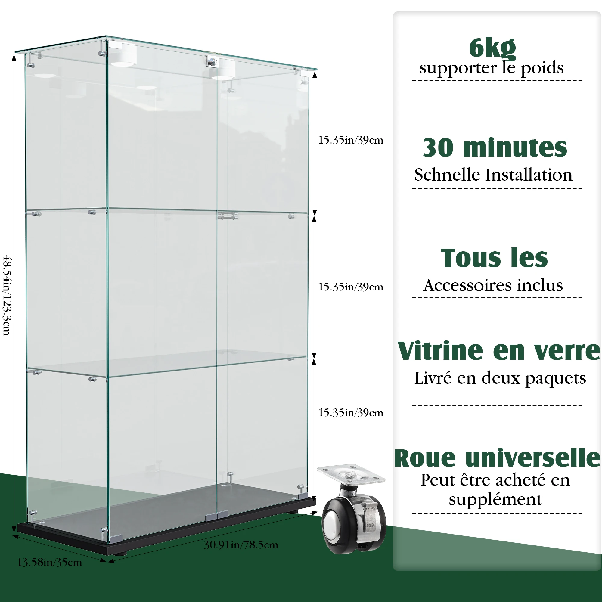 Inicio > Muebles > Muebles de bar Vitrina de Vidrio de Una Puerta Rosahqnda con 5 Estantes, Gabinetes Negros para Sala de Estar, Dormitorio, Oficina, Exhibición de Colecciones Información de envío