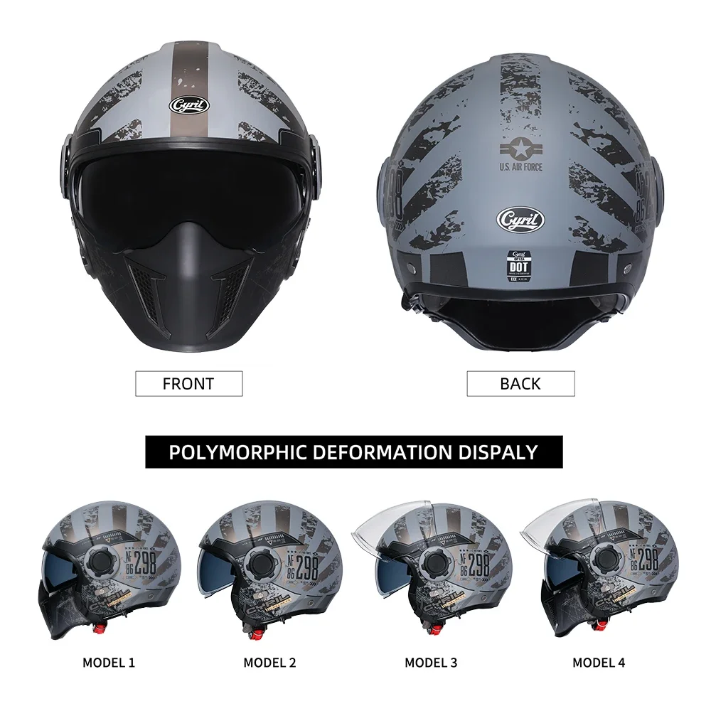 Casco Para Motos Casco de motocicleta de cara abierta para hombre y mujer, protector de cabeza Modular de doble lente, aprobado por DOT ECE, CYRIL OP12A, Retro - TopDealBox