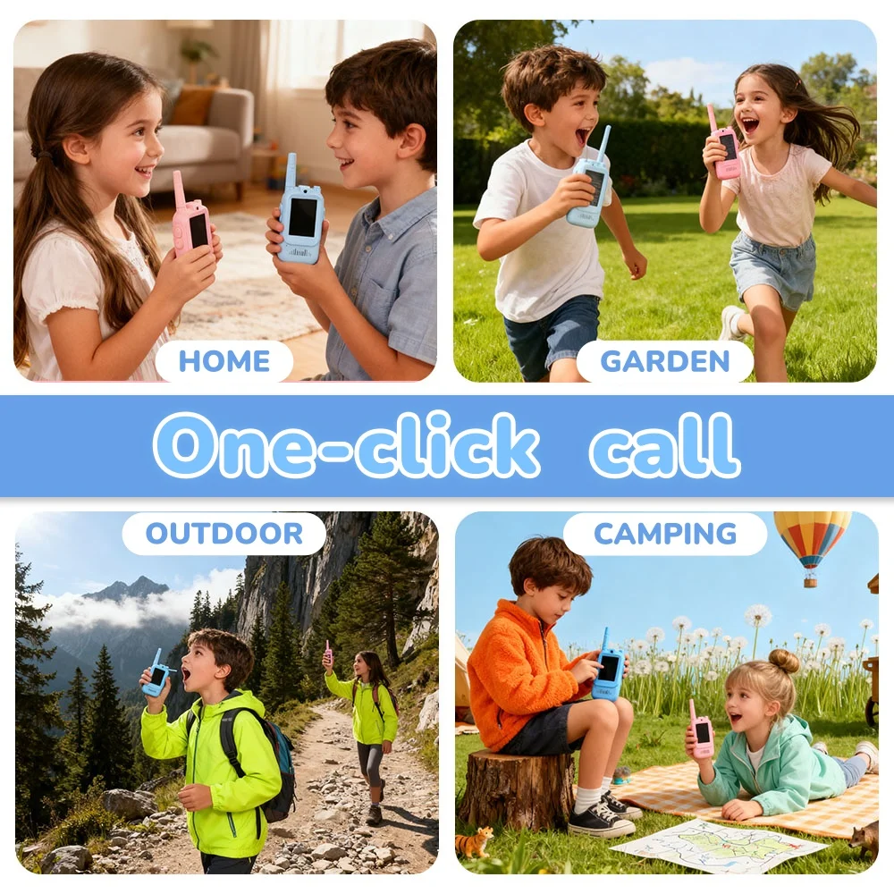Walkie Talkie con vídeo para niños, 2 uds., pantalla HD de 2 pulgadas, juguetes recargables para acampar en interiores, viajes, regalos de cumpleaños para niños de 3 a 12 años - TopDealBox