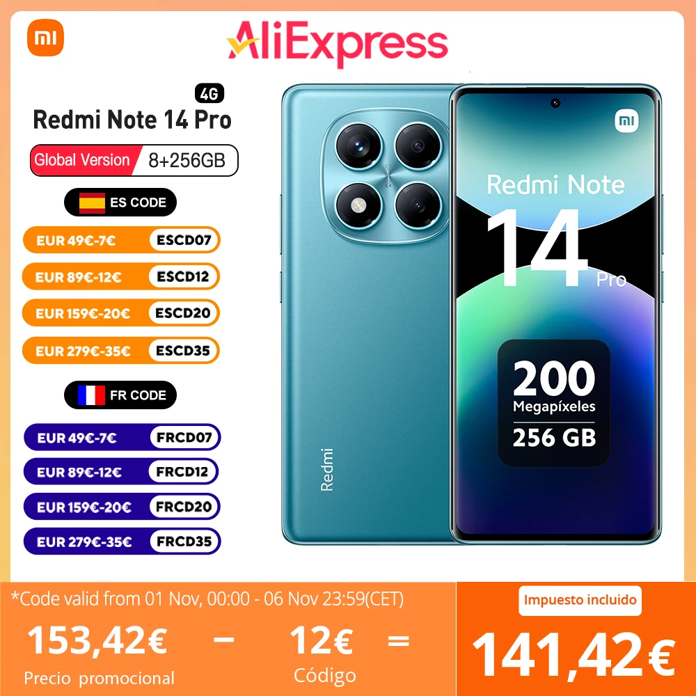 ♡Vista rápidaXiaomi Redmi Note 14 4G NFC Versión Europea 128GB/256GB MTK Helie G99-Ultra Pantalla AMOLED 6,67" 120Hz Cámara 108MP, 33W, IP54122.94 EUREUR 195.21Destacado★★★★★★4.8