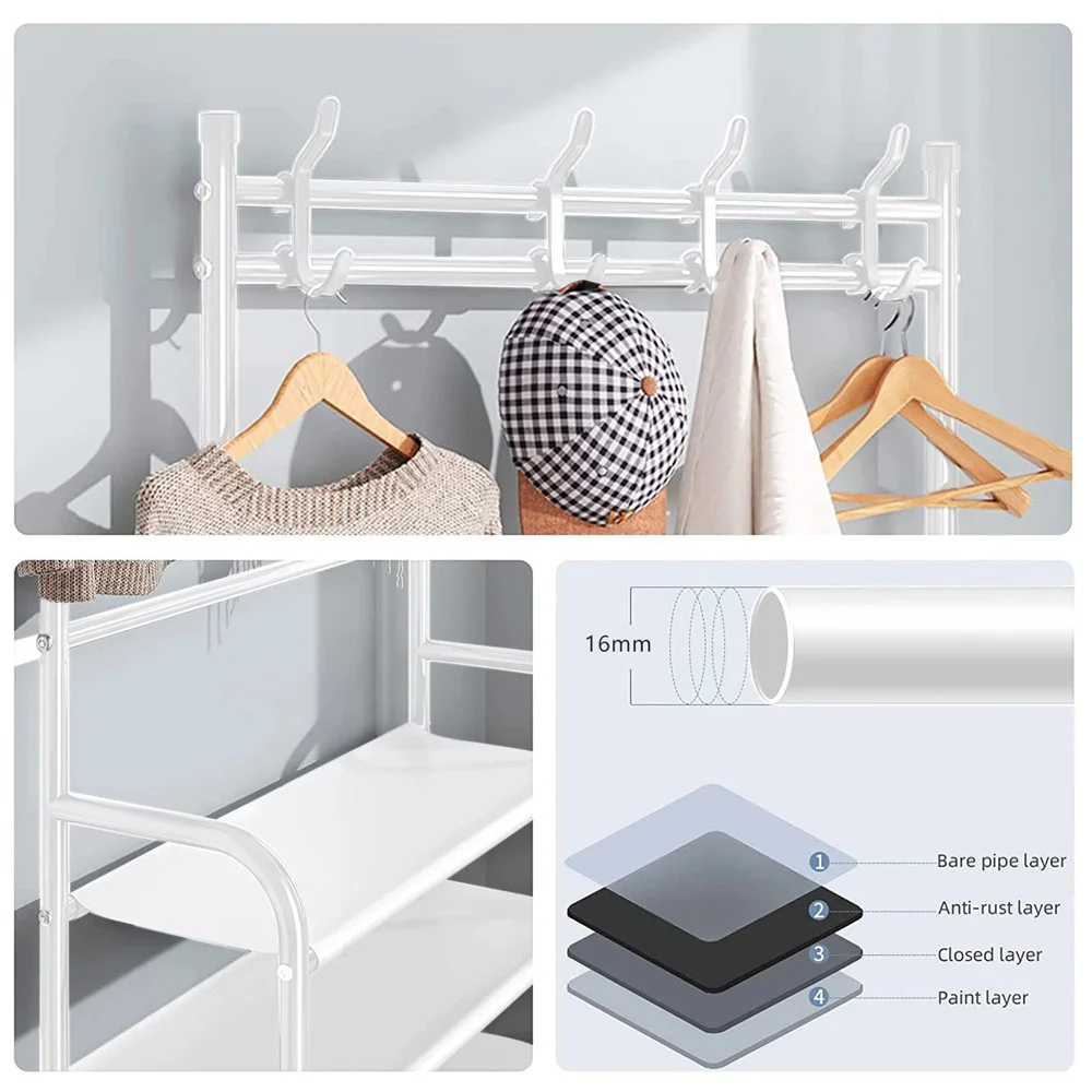 Zapatero de 5 niveles con 8 ganchos, perchero para el hogar, soporte para sombrero, puerta, estantes para ropa DIY, Zapatero para sala de estar, almacenamiento de 80CM de ancho - TopDealBox