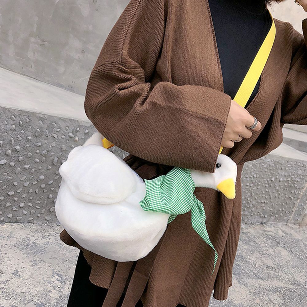 Bolso de hombro ajustable de gran capacidad para mujer, bandolera de felpa de pato, con dibujos de animales, estilo coreano