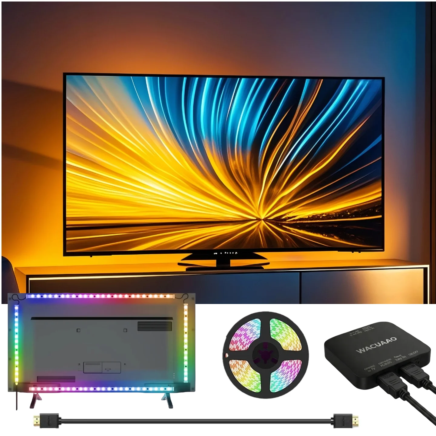 ♡Vista rápidaWACUAAO - Retroiluminación LED HDMI Sync para TV, Compatible con PS5/Apple TV/Fire Stick, Tira de Luces Inmersivas para Juegos, Funciona SOLO con Decodificadores de TV Externos48.19 EUREUR 767.76Destacado★★★★★4.4